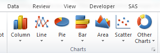 In general, chart making in Excel is easy, but it can be hard to get things just right. Once you have some data in your spreadsheet, go to the Insert ribbon and go to the Charts area (Figure 4). There, you will find a variety of charts to choose from. You can select your data area before you click the chart type that you want, and Excel will try to interpret what you want to do. Sometimes it’s right, and sometimes it’s wrong, so you will need to check what it is doing. If you choose not to select your data first, then Excel will produce a blank chart. You can select that and begin working.
