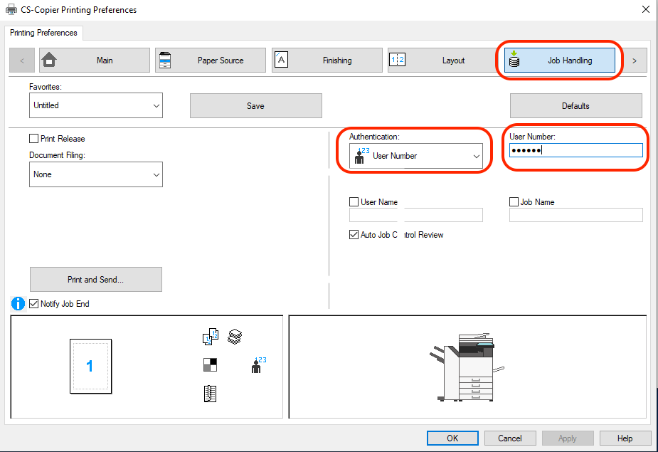 - Right-click the printer you want to configure and click Printing Preferences and navigate to Job Handling. If the Job Handling tab does not show, the wrong printer driver is being used.