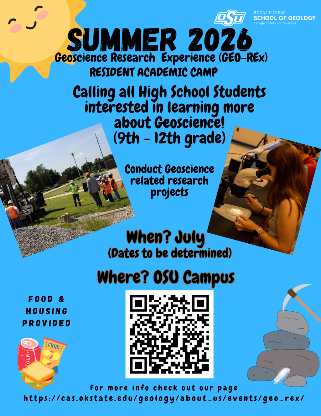 Registration cancellations must be received by 11:59 pm on June 20, 2025 to receive a 100% refund. Please email cancellation notices to geology_outreach@okstate.edu. Cancellations received after this date will not be refunded.